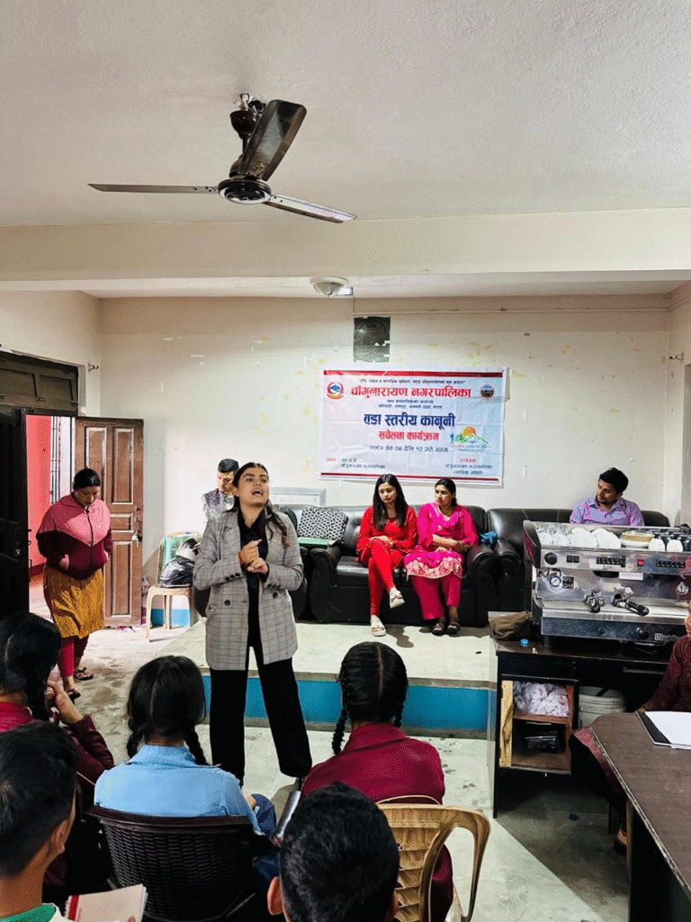 नगरपालिकाको ९ वटै वडाका जनप्रतिनिधि, समाजसेवी, प्रहरी प्रतिनिधि, शिक्षक तथा विद्यार्थी प्रतिनिधि गरी करिव ७ सय जनालाई कानूनी सचेतना प्रदान गर्ने गरी वडा स्तरीय कानूनी सचेतना कार्यक्रम सम्पन्न गरिएको हो ।