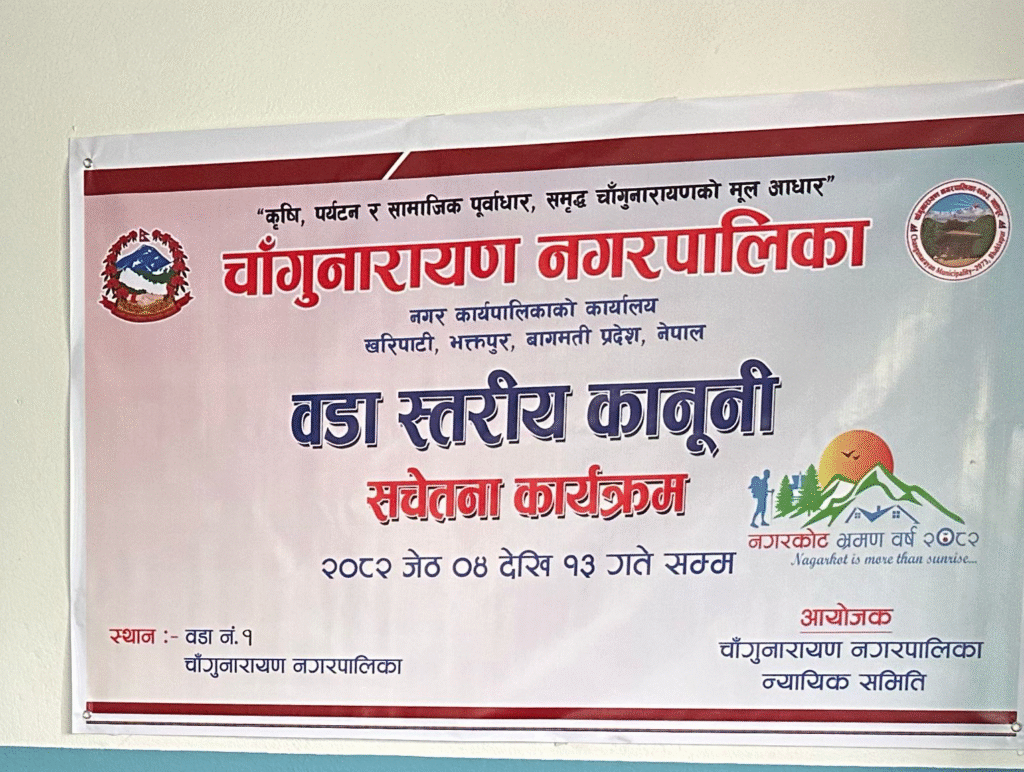 चाँगुनारायण नगरका ९ वटै वडामा कानूनी सचेतना सम्बन्धी कार्यक्रम सञ्चालन, ७ सय भन्दा बढी लाभान्वित