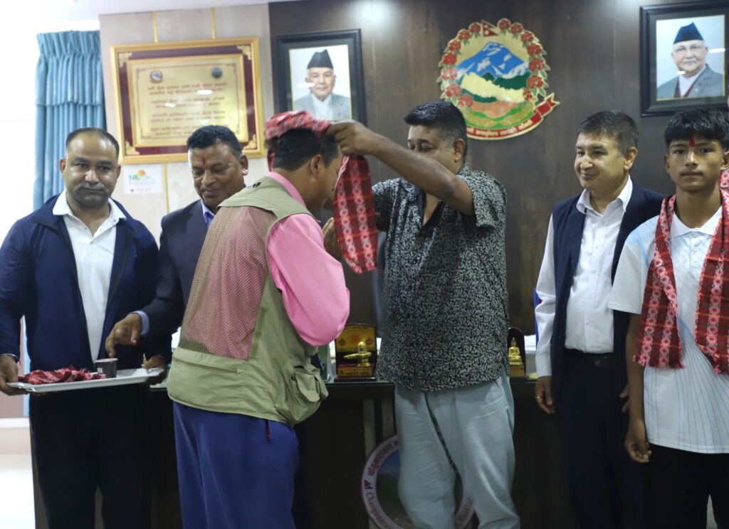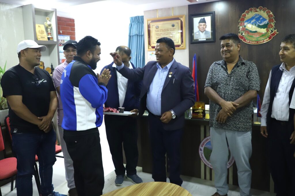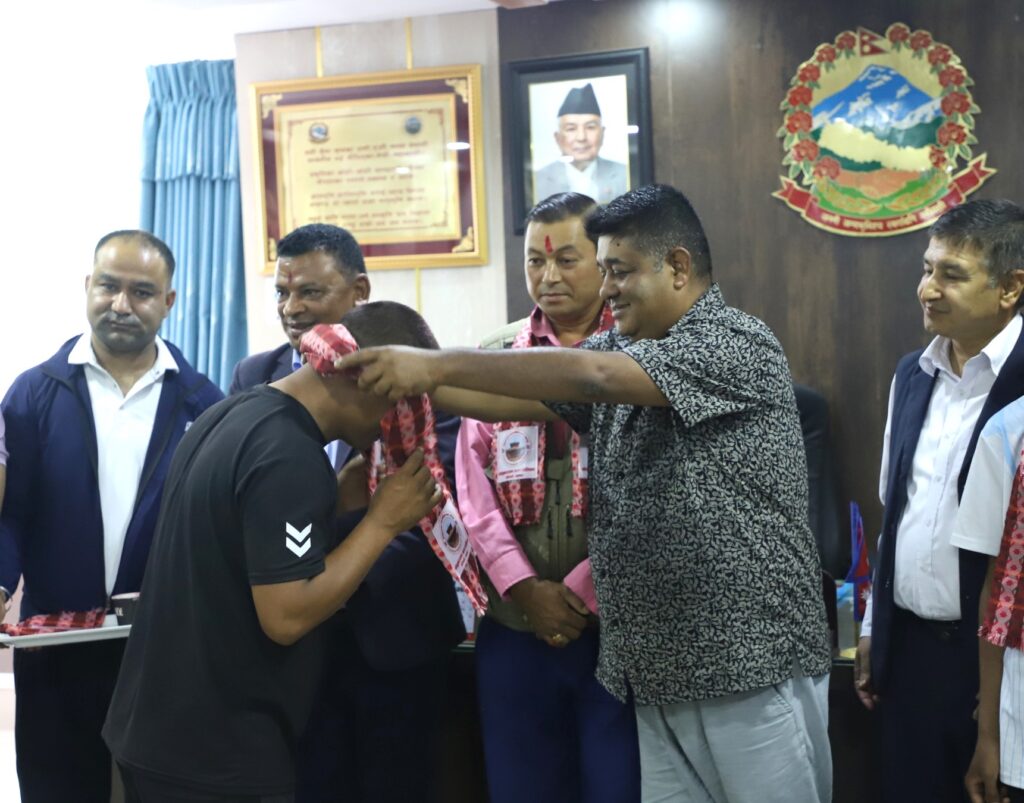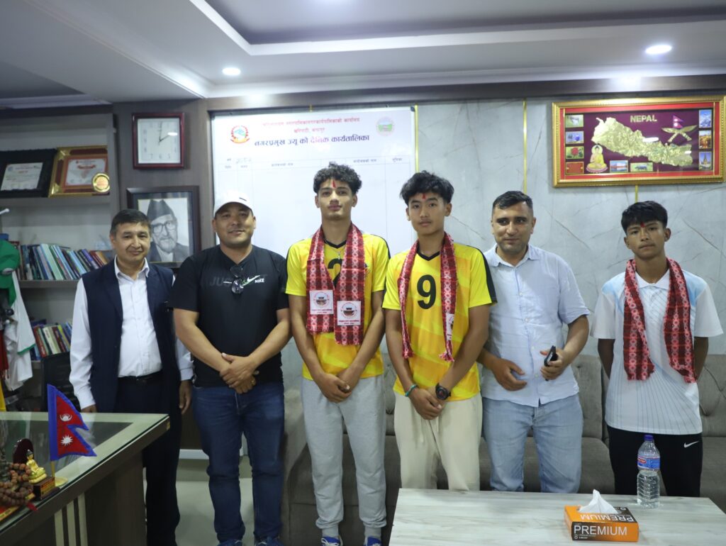 नगर प्रमुख जीवन खत्री र उपप्रमुख रमेश बुढाथोकीले खेलाडीहरुलाई टिका र खादा लगाई सम्मान गर्नुभयो ।