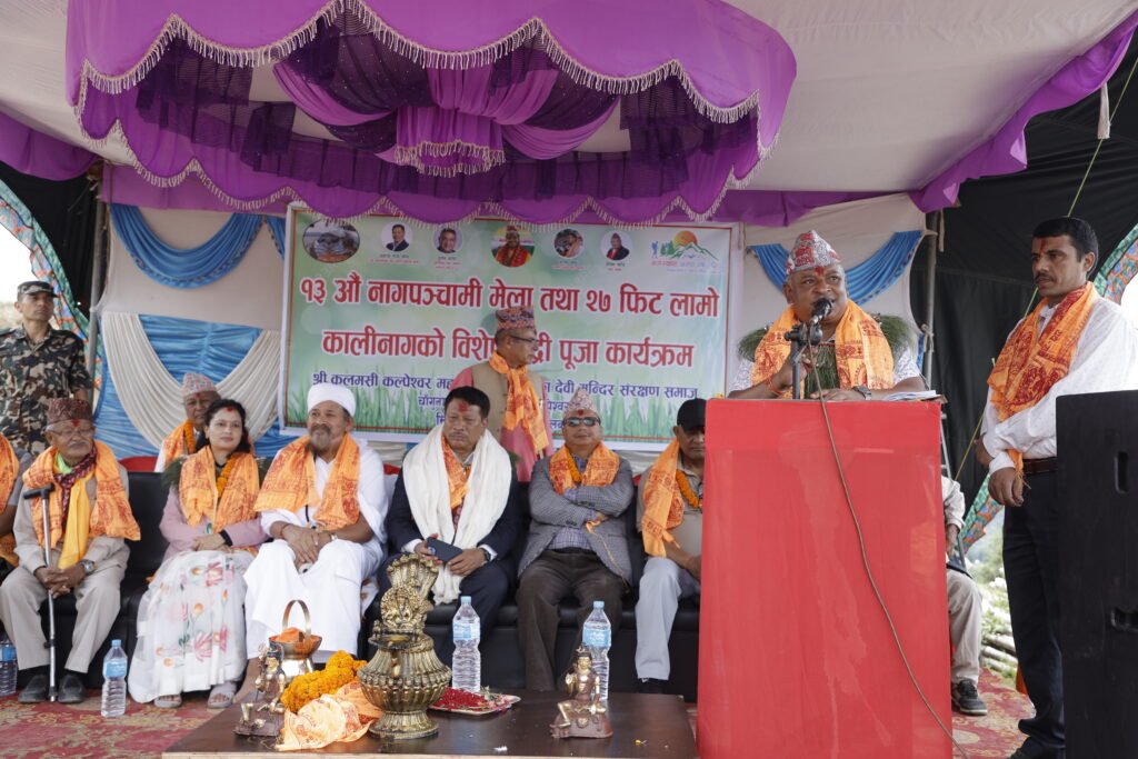 १३ औँ नाग पञ्चमीको अवसरमा कलमसीस्थित कल्पेश्वर महादेव तथा कालिका देवी मन्दिर संरक्षण समाजद्वारा आयोजित विशेष रुद्री पूजाका क्रममा बोल्दै मेयर खत्रीले चाँगुनारायण क्षेत्रलाई तपोभूमिका रूपमा चिनाउँदै यहाँको धार्मिक, ऐतिहासिक तथा पुरातात्विक महत्वको संरक्षण गर्दै विकासमा जोड दिइएको उल्लेख गर्नुभयो ।