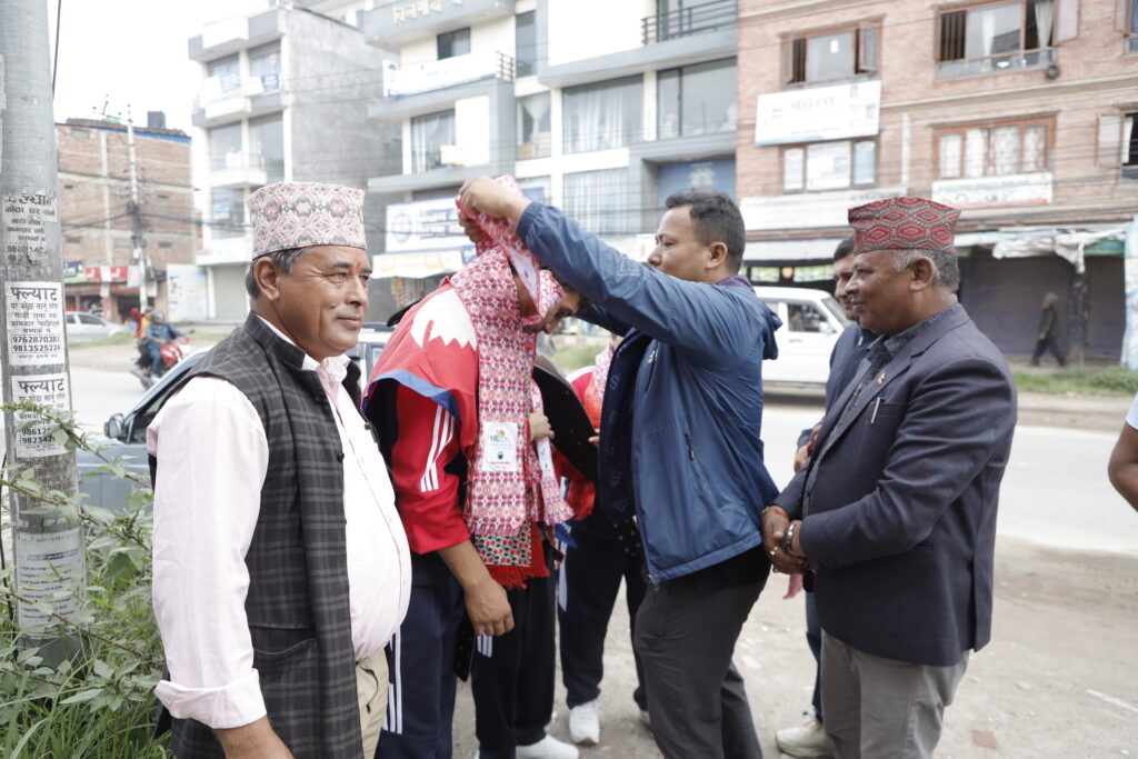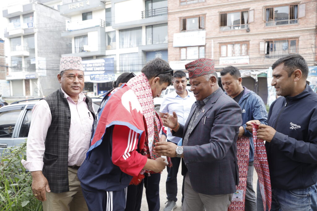 त्यस्तै, चाँगुनारायण नगरपालिकाका खेलाडीहरूको सम्मानमा नगर प्रमुख जीवन खत्रीले स्वागत गर्नुहुँदै सम्मान गर्नुभयो । उहाँले चाँगुनारायणको नाम विश्व मञ्चमा राख्न सफल भएकोमा खुसी समेत ब्यक्त गर्नुभयो । स्वागत कार्यक्रममा वडा नंं ७ बाट जनप्रतिनिधिहरु पुष्कर खड्का, श्यामकाजी नयाजु, तथा वडा नं ७ का नेपाली कांग्रेस सभापति मनोज गिरी लगायत सहभागि हुनुहुन्थ्यो ।