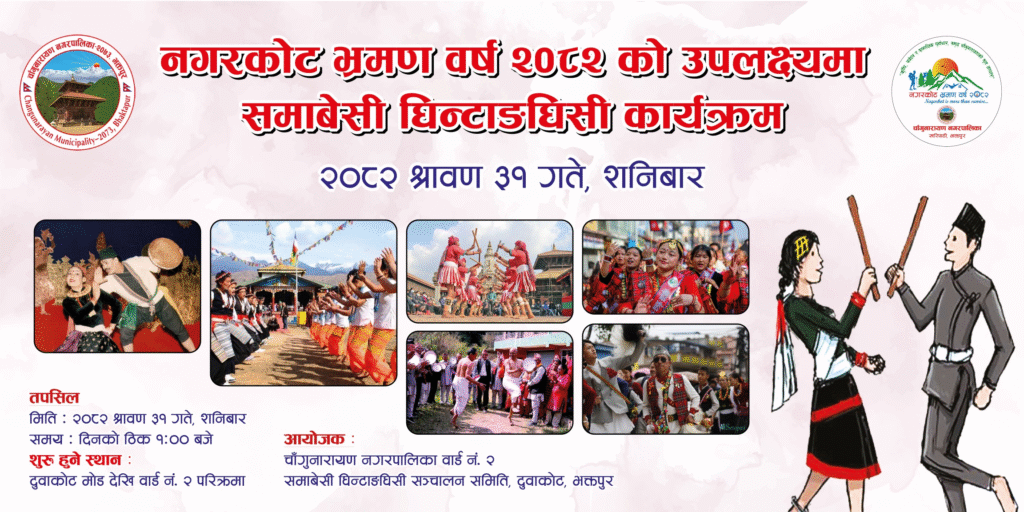 चाँगुनारायण (दुवाकोट), साउन २९: नगरकोट भ्रमण वर्ष २०८२ को अवसरमा चाँगुनारायण नगरपालिका वडा नं २ ले ‘समाबेशी घिन्ताङ्घिसी कार्यक्रम’ आयोजना गर्न लागेको छ ।