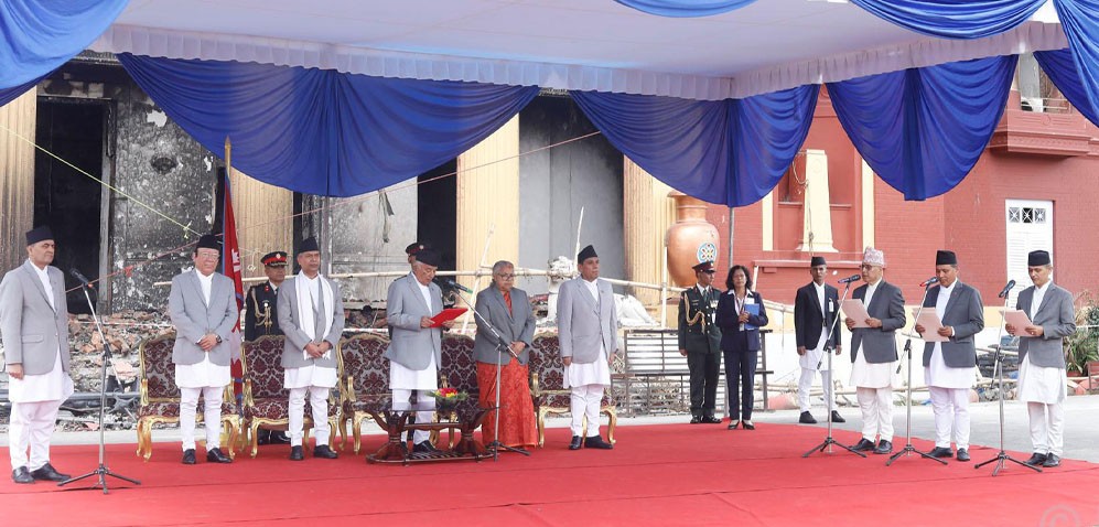 शपथ ग्रहण समारोहमा उपराष्ट्रपति रामसहाय प्रसाद यादव, प्रधानमन्त्री सुशीला कार्की, प्रधानन्यायाधीश प्रकाशमान सिंह राउत, राष्ट्रियसभा अध्यक्ष नारायणप्रसाद दाहाल, पूर्वप्रधानमन्त्री डा. बाबुराम भट्टराईलगायत नेपाल सरकारका विशिष्ट अधिकारीहरूको उपस्थिति रहेको थियो । नवनियुक्त मन्त्रीहरुले सोमबार आजै सिंहदरबारमा पदबहाली गर्नुहुने जनाइएको छ ।