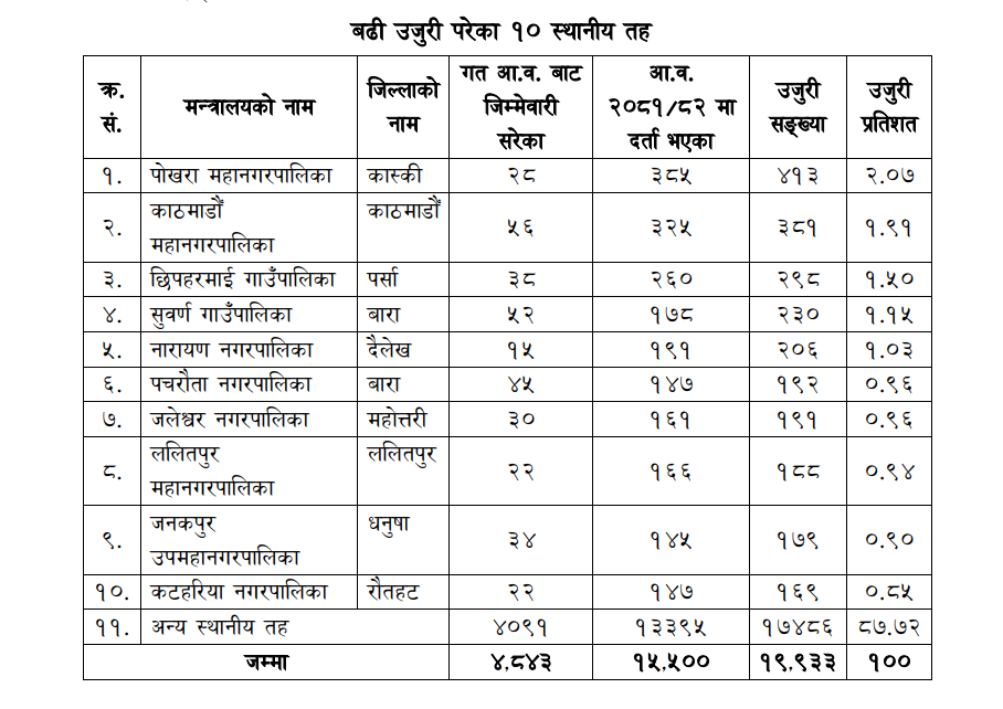 यी हुन सबैभन्दा बढी उजुरी पर्ने पालिकाहरु:-