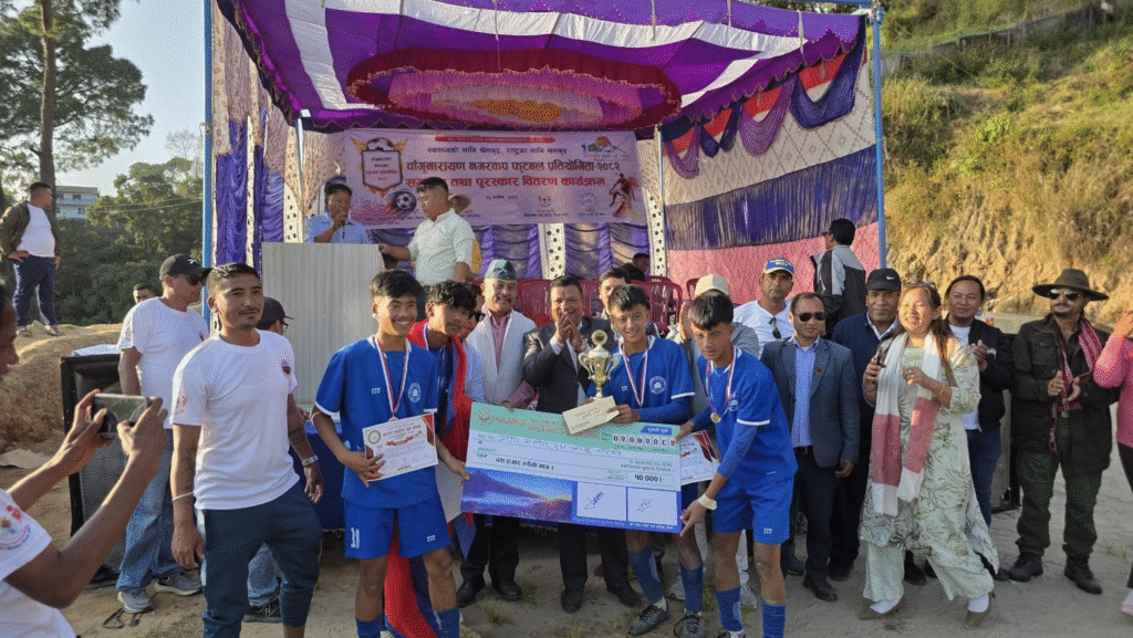समापन समारोहमा चाँगुनारायण नगरपालिकाका नगरप्रमुख जीवन खत्रीले विजयी टोलीहरूलाई पुरस्कार तथा ट्रफी वितरण गर्नुभयो। कार्यक्रमलाई वडा नं ६ का वडाध्यक्ष धनबहादुर तामाङ, ७ का वडाध्यक्ष श्यामकृष्ण नयाजु श्रेष्ठ, वडा नं. ४ का वडाध्यक्ष रोज तामाङ, नगर खेलकुद विकास समितिका संयोजक रघु केसीका साथै अन्य जनप्रतिनिधिहरूको समेत गरिमामय उपस्थिति जनाएका थिए।