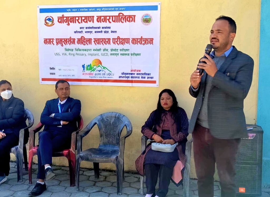 नगरपालिकाले सञ्चालन गर्दै आएको लक्षित स्वास्थ्य सेवा अभियान अन्तर्गत आज भिडियो एक्स–रे (USG), VIA, Ring Pessary, Implant तथा गर्भवती परीक्षण जस्ता सेवा प्रदान गरिएको थियो। शिविरबाट १२८ जनाले स्वास्थ्य सेवा प्राप्त गरेका छन् ।