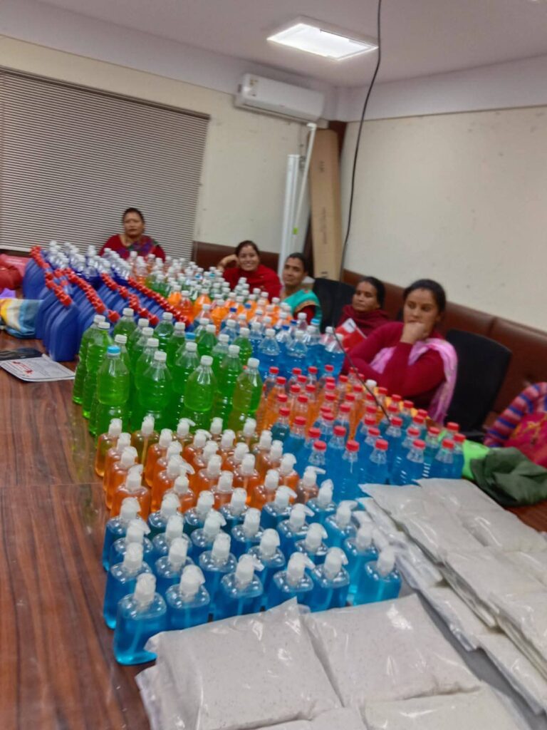तालिममार्फत महिलाहरूलाई आत्मनिर्भर बनाउने उद्देश्यले सरसफाइ सामग्री उत्पादनसम्बन्धी व्यवहारिक ज्ञान र सीप प्रदान गरिएको थियो।