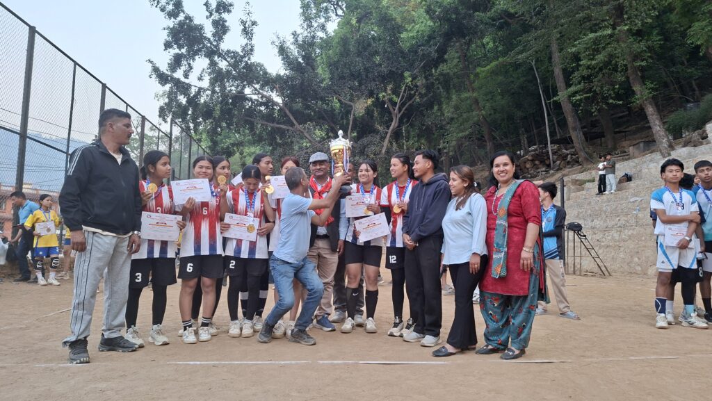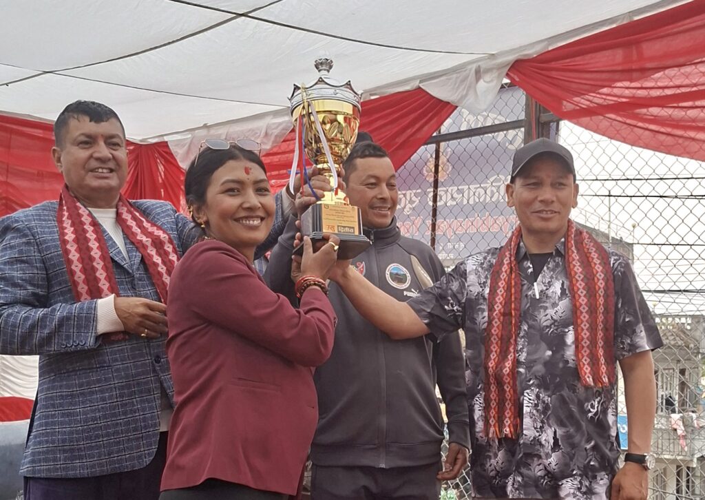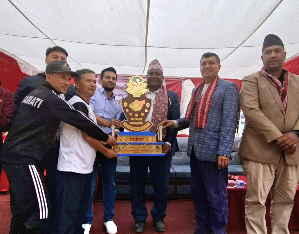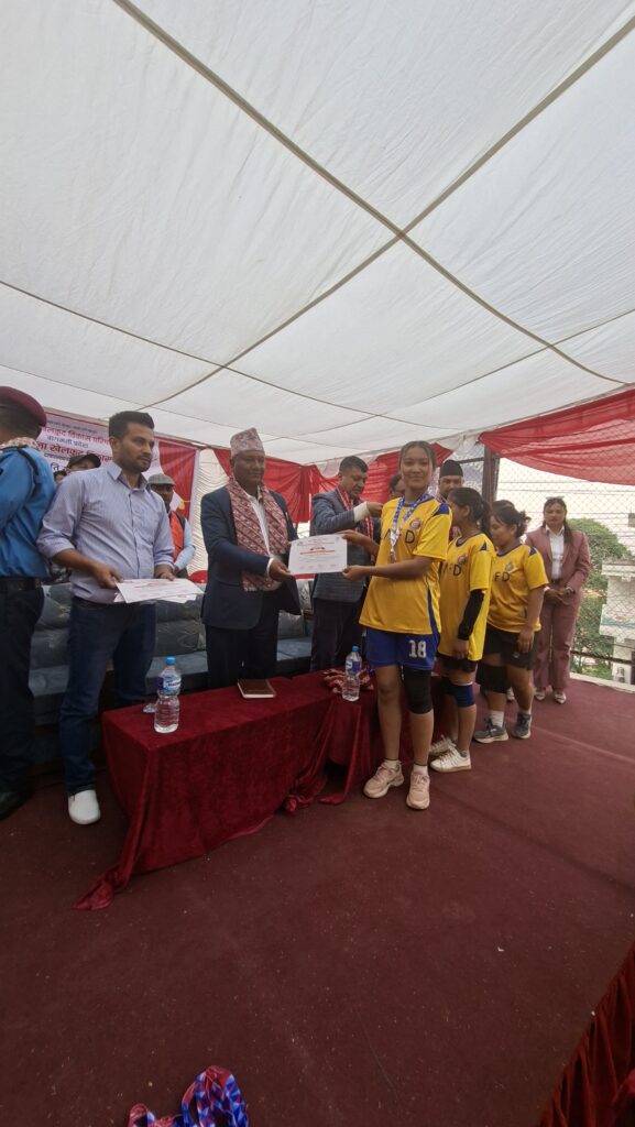 कार्यक्रममा नगर प्रमुख थापाले विजयी खेलाडी तथा विद्यार्थीहरूलाई शिल्ड वितरण गर्नुभयो।